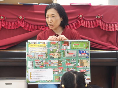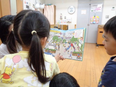 きりん組、ぞう組さんは、絵本の他にも「おさんぽ安全マップ」を見て