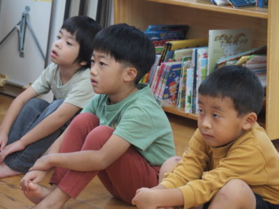 ぱんだ組、きりん組、ぞう組さんに向けて安全指導がありました。