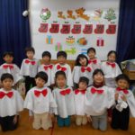 クリスマス会では感染対策の下、5歳児さんが聖歌隊になりました。