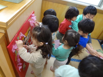 最後はみんなで桃の花を飾りつけしてくれました😊