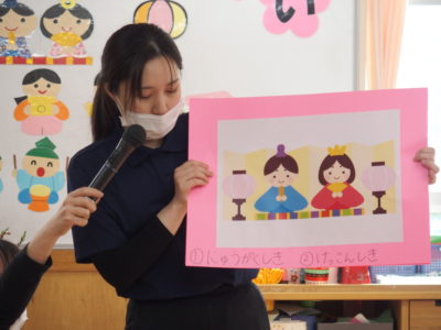 「うれしいひなまつり」を歌ったり、ひなまつりクイズをしたり・・・