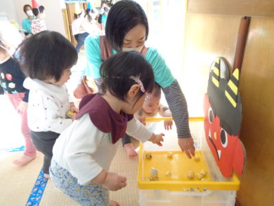 びっくりして固まってしまうお友だちもいれば、怖がって泣いてしまうお友だちもいたり、