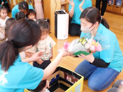 お世話になった先生に子どもたちからプレゼントと花束を渡してもらいましたよ🎵