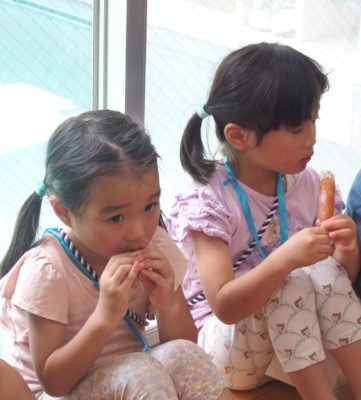 暑さ対策をとりながら、ぞう組さんは元気に戸越八幡神社まで出発!