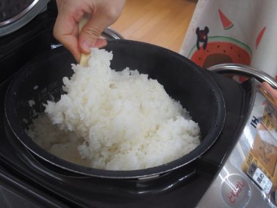 炊飯器を開けると白い湯気と共にお米のいい香りがして・・・