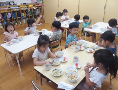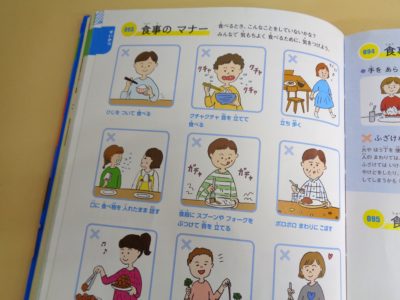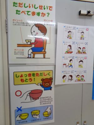 掲示された食事のマナーや姿勢などを真剣に見ていた子どもたち。