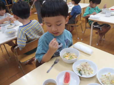 ピーマンの塩昆布和えを作り、みんなで食べました😄