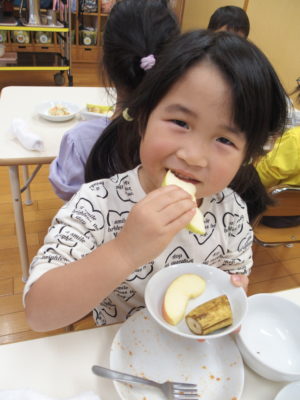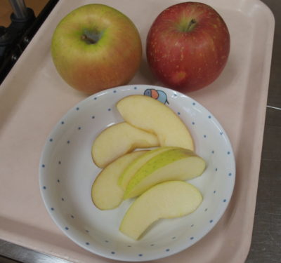 そして給食の時間にはりんごの食べ比べをしました!😊